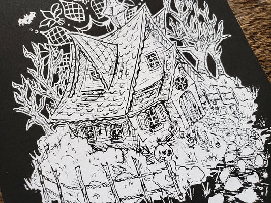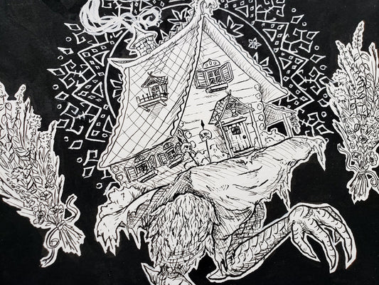 Baba Yaga's Hut Original Pen and Ink Drawing
