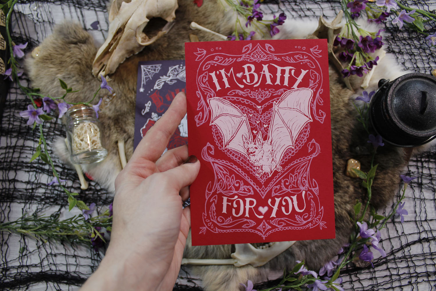 A special set of spooky, romantic postcard valentines of my Batty for You and Love You to Death cards!