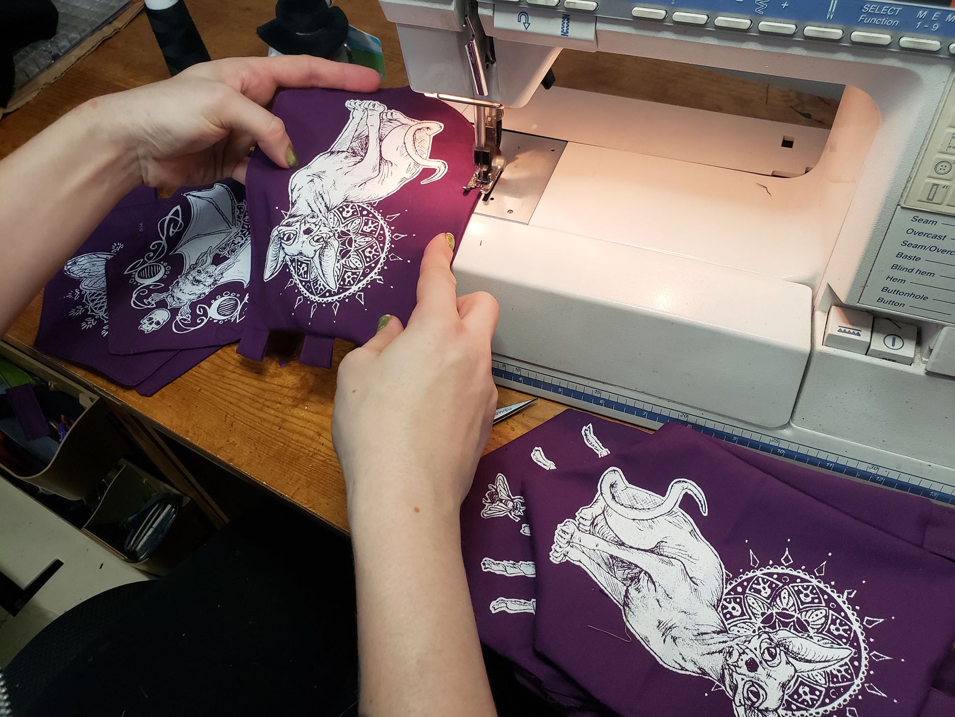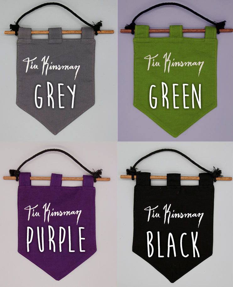 Every design comes in four fabric colors; black, grey, green, or purple. Please be sure to specify which you would like in the variations box!I also offer custom designs as well! Feel free to inqure by email (tkinsmanart@gmail.com)