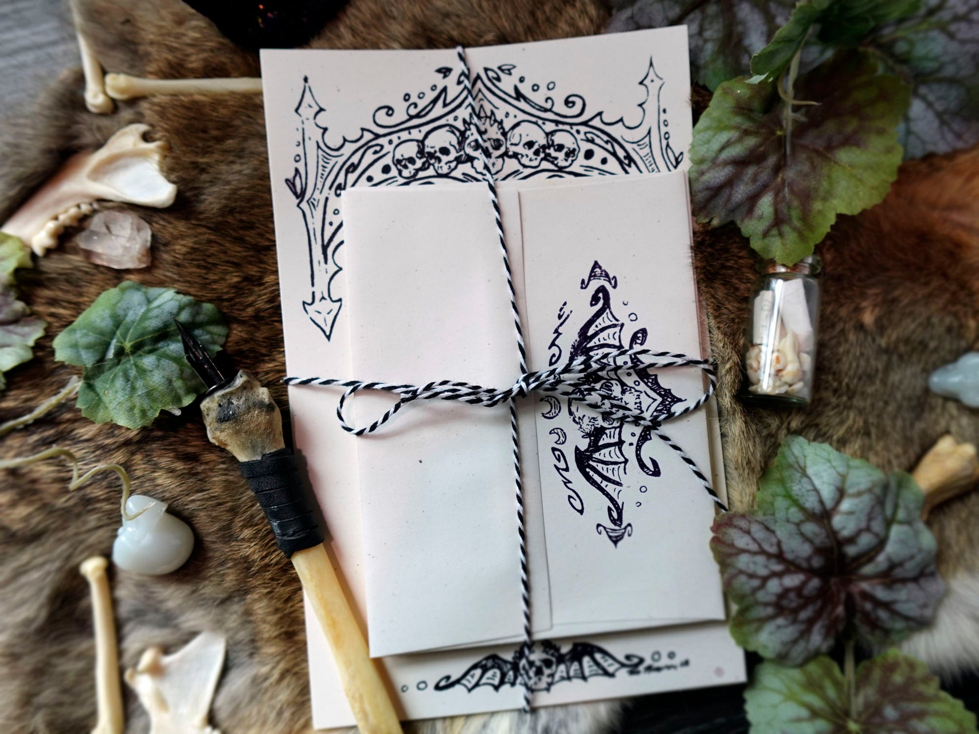 This stationery collection was inspired by Madam Kali and her skull-lined catacombs from Penny Dreadful.